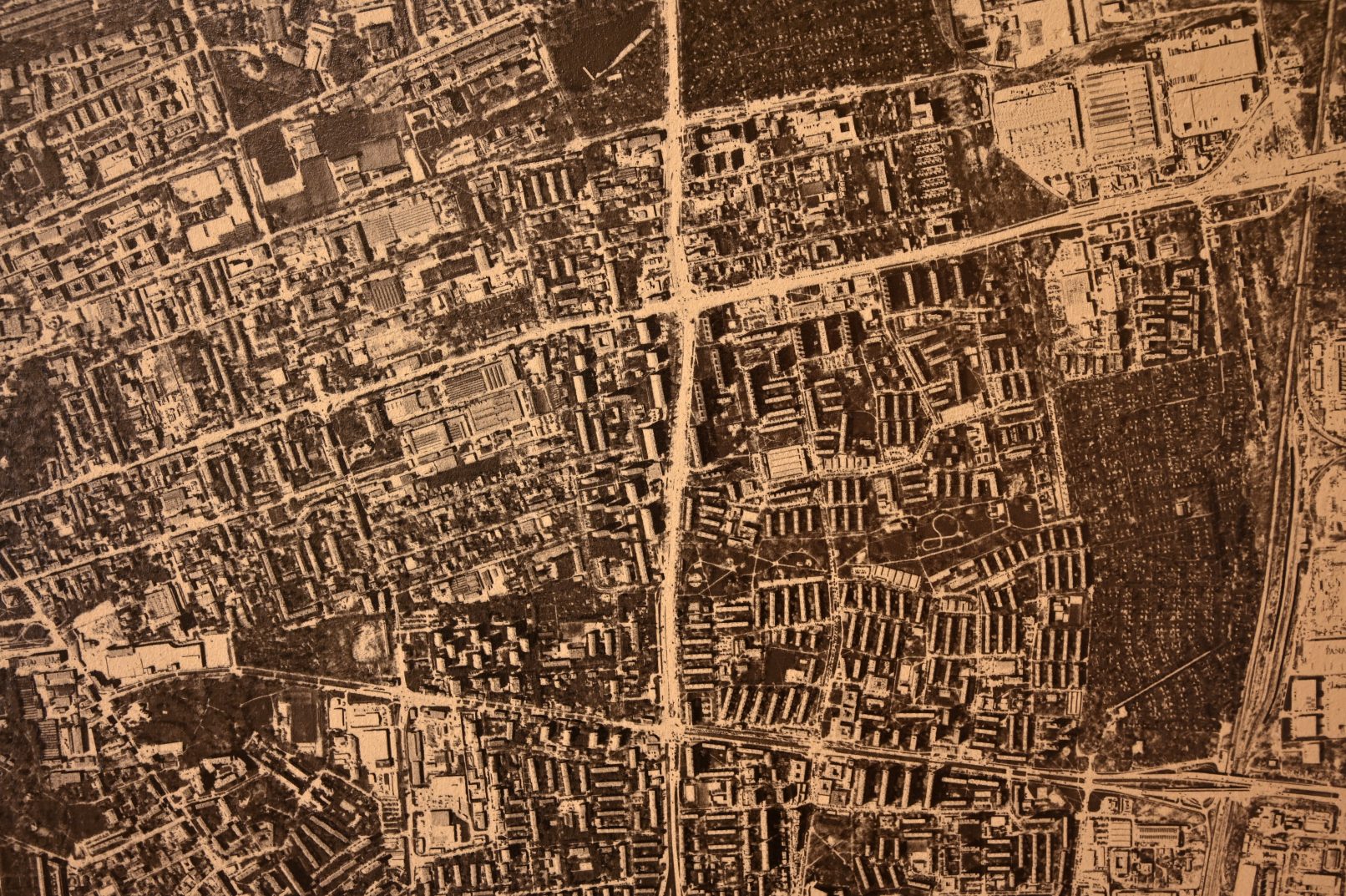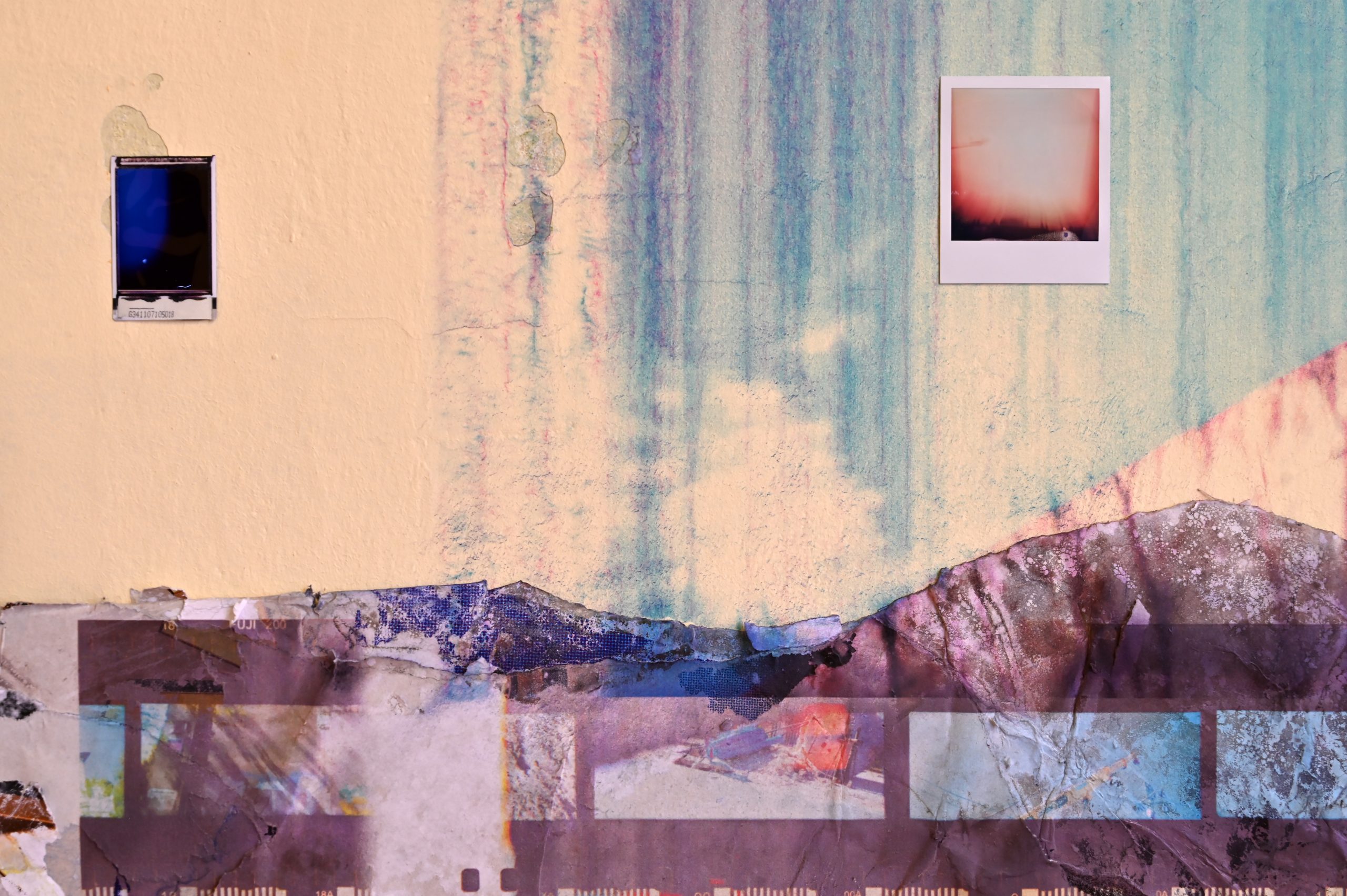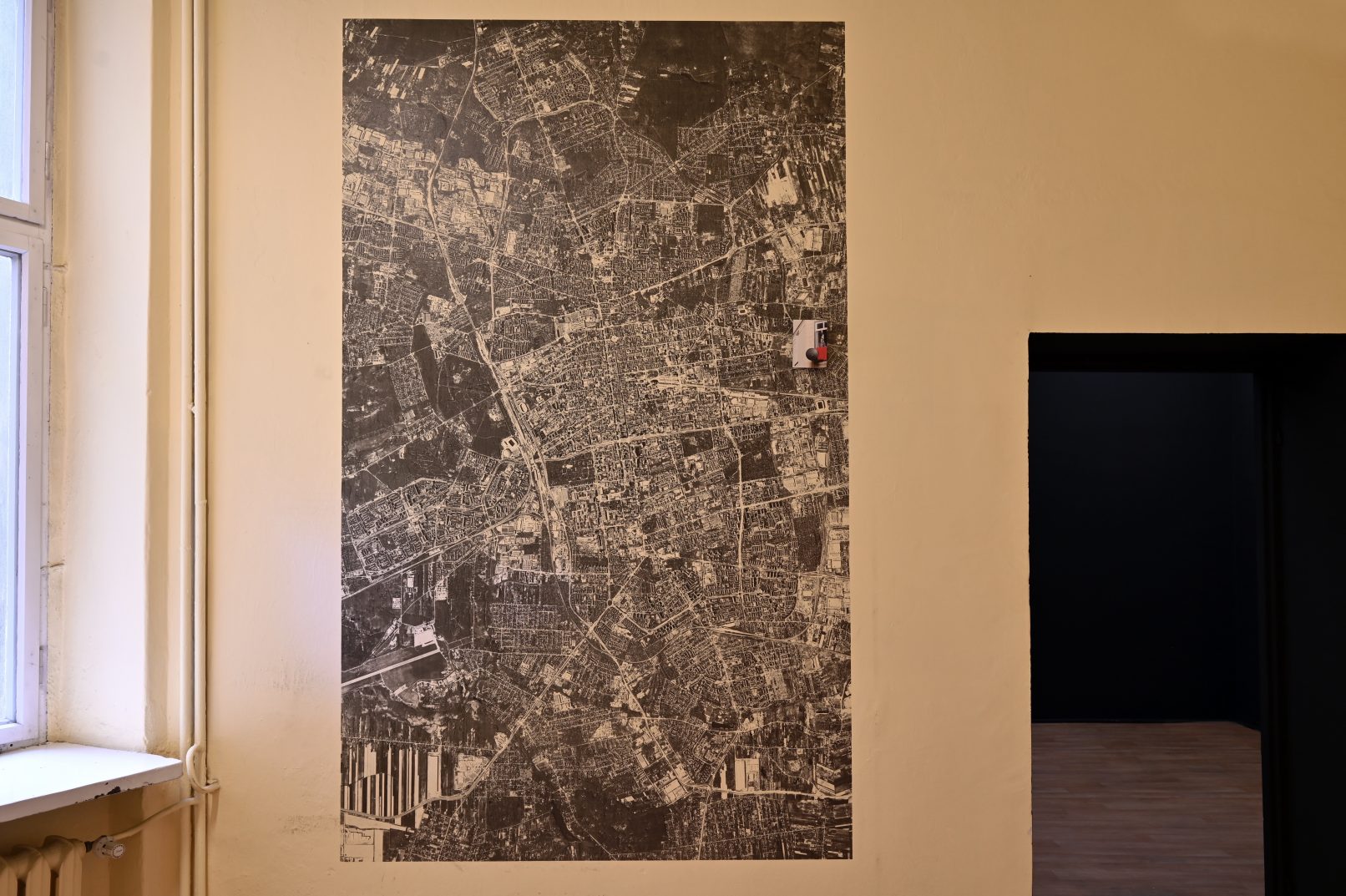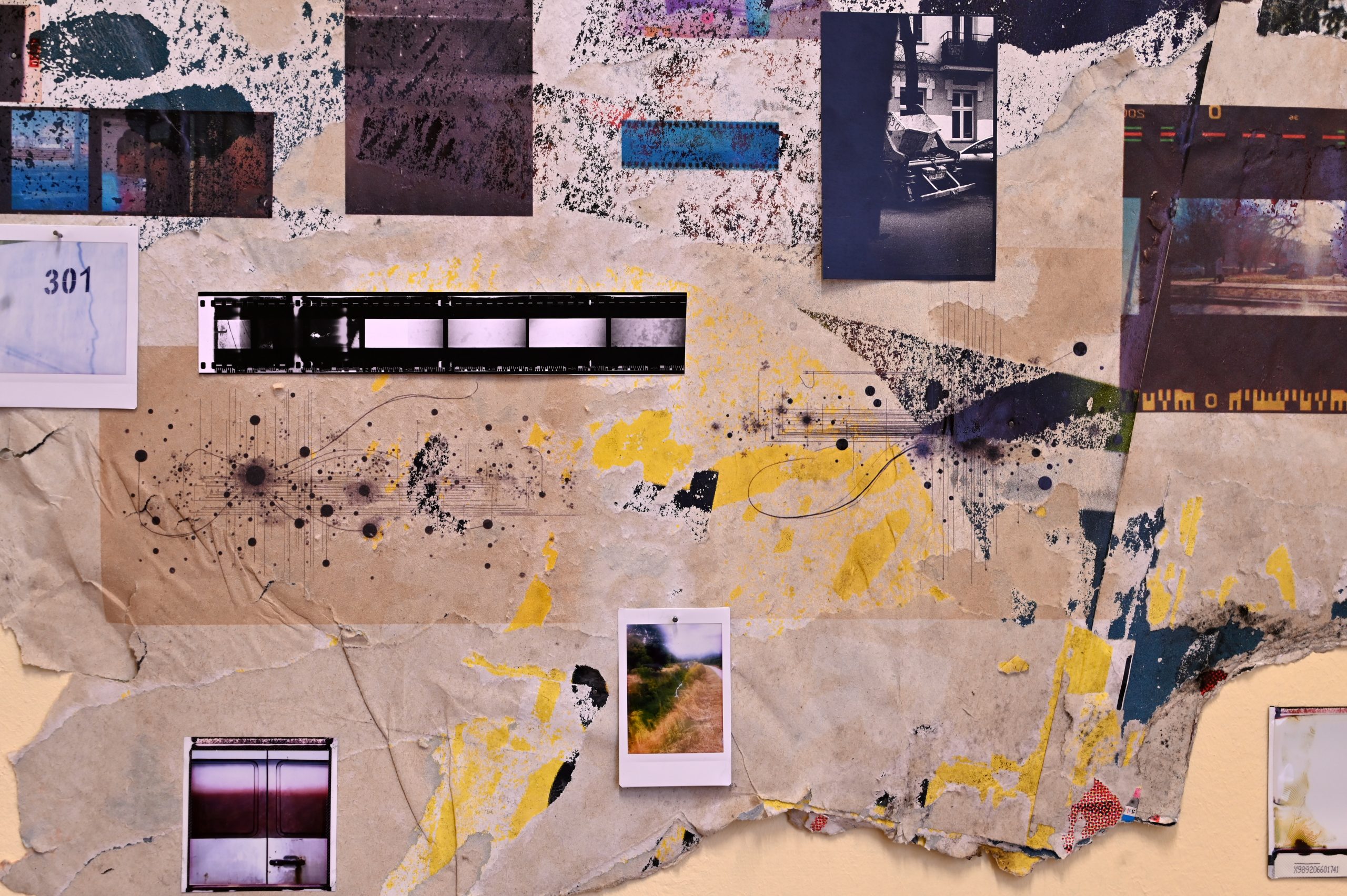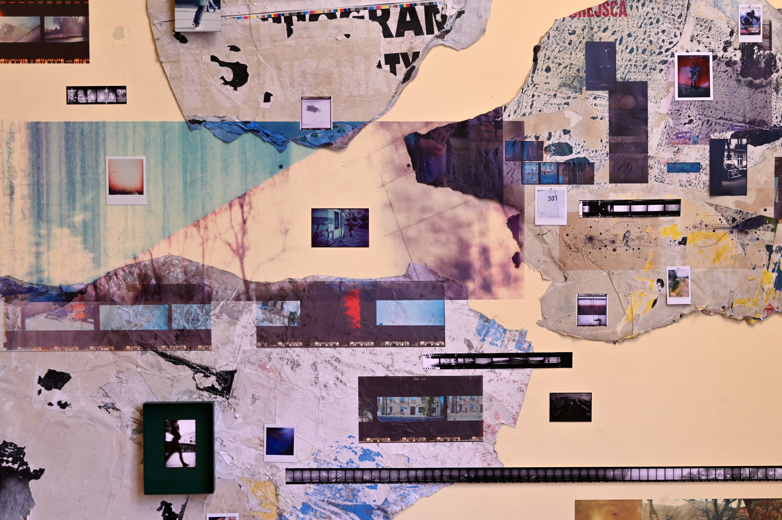 Z centrum – wielowarstwowa kompozycja śródmiejskiej tkanki miasta, zbudowana bezpośrednio na ścianie galerii przy użyciu zużytych billboardów, fotografii i polaroidów. Układ rozwijał się w kilkuetapowym procesie jako forma mapy intuicyjnej, opartej na rezonansie relacji wyłaniających się obrazów.
