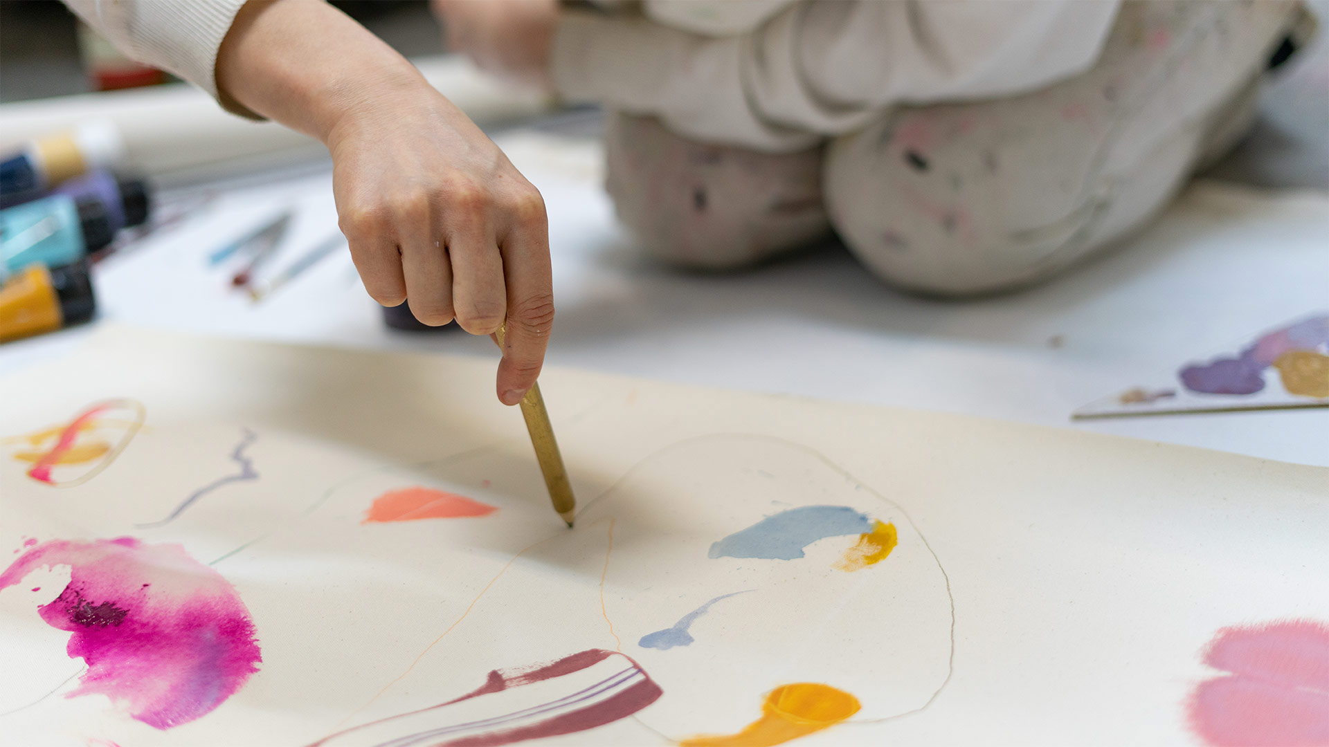 W “Przyjaciołach” fotografując przyjaciół, skupiam się na uchwyceniu emocji, zatrzymaniu w pamięci naszych wspólnych chwil, ale także zwracam uwagę na wzajemne inspiracje – w ich malarstwie oraz mojej fotografii w okresie studiów. Moi przyjaciele są także autorami malarstwa na etui spajającym projekt.