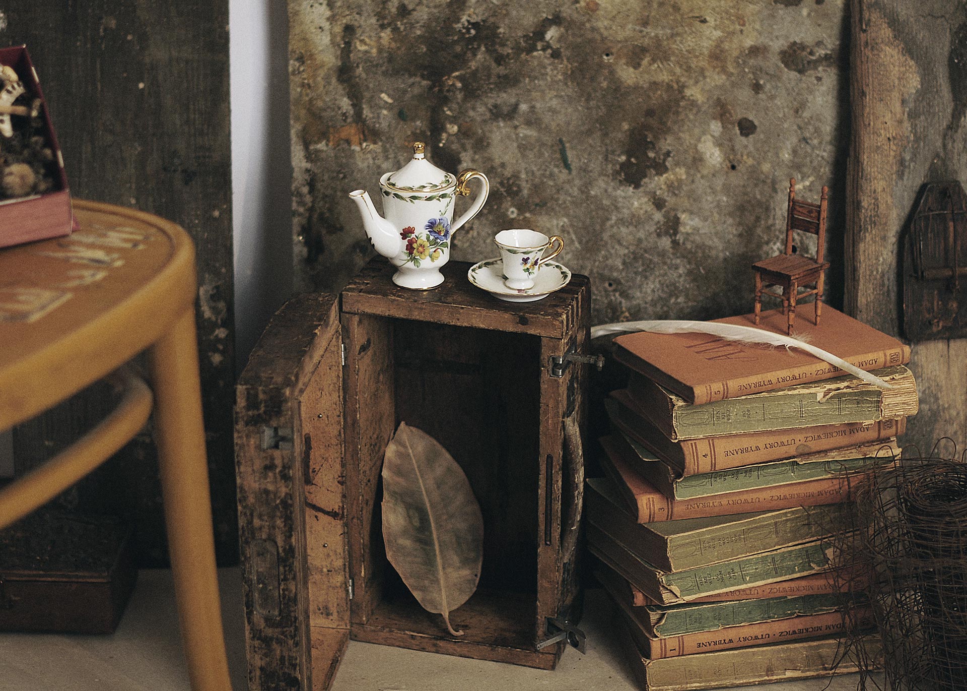 Nie jest to zwykła wystawa fotografii. Jest to próba zinterpretowania tego, czym jest dla mnie fotografia. A w końcu nie jest samoistnym bytem – jest tylko częścią pewnej całości. Jako fotograf lubiący wychodzić poza granice kadru, uważam, że w pracy nad fotografią kreacyjną nie liczy się tylko końcowy efekt, ale też proces, podczas którego powstają specjalne inscenizacje, kostiumy, przedmioty… To właśnie one odgrywają najważniejsze role w tym przedstawieniu. Każdy z tych tysiąca elementów to osobny świat mający swoją historię, a ich całościowy zbiór stanowi jeden świat, ten mój własny, który z jednej strony kojarzy się z baśniową fikcją, ale z drugiej strony jest najwierniejszą rzeczywistością.