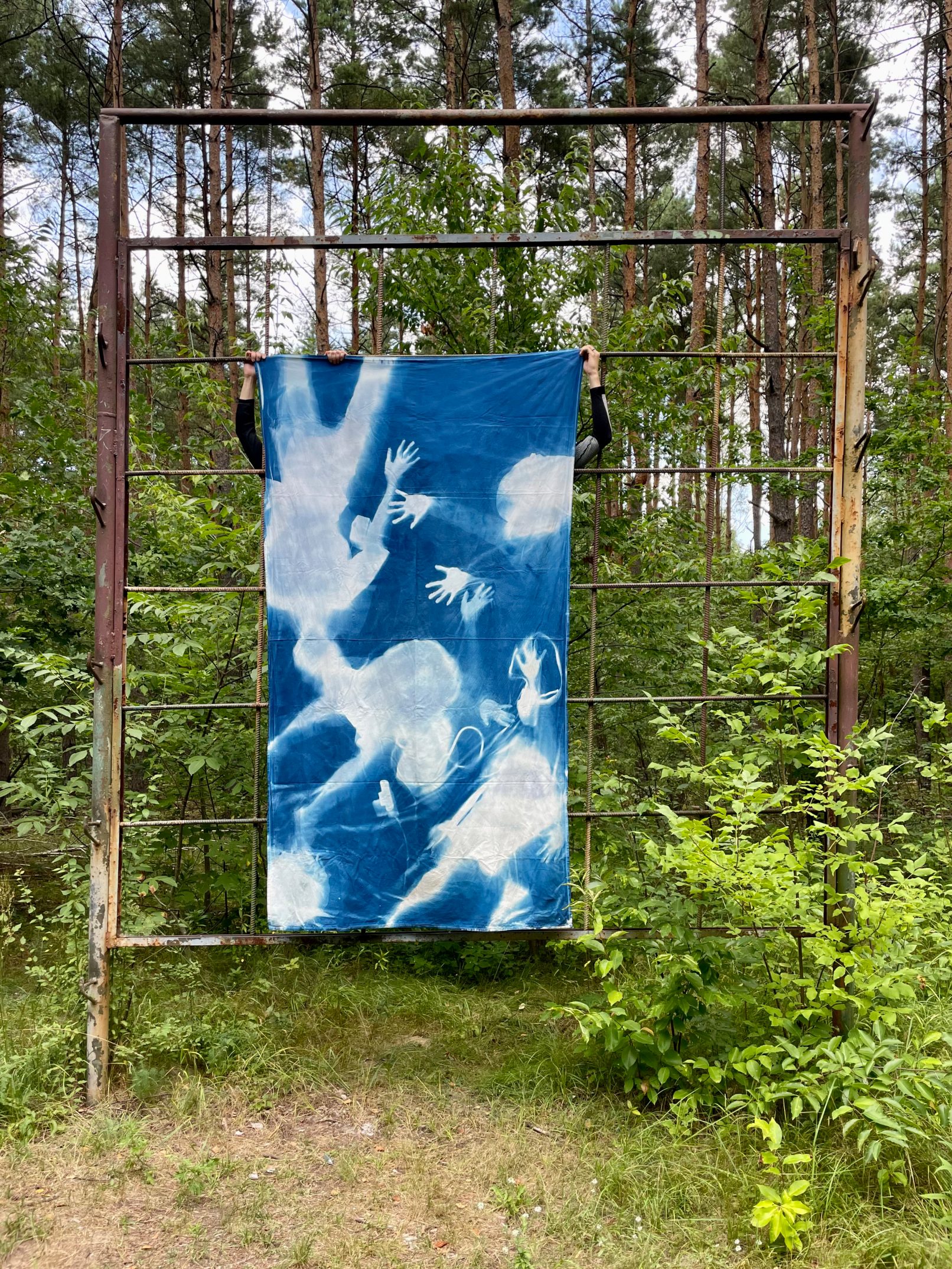 Uczestnicząc w różnego rodzaju akcjach aktywistycznych i protestach, naświetlałam osoby czynnie w nie zaangażowane bezpośrednio na światłoczuły materiał, tworząc ich zbiorowy portret w skali 1:1. Cyjanotypie te są zatem również zapisem nadziei – nadziei na zmianę, nadziei na lepszy świat i nadziei na życie.