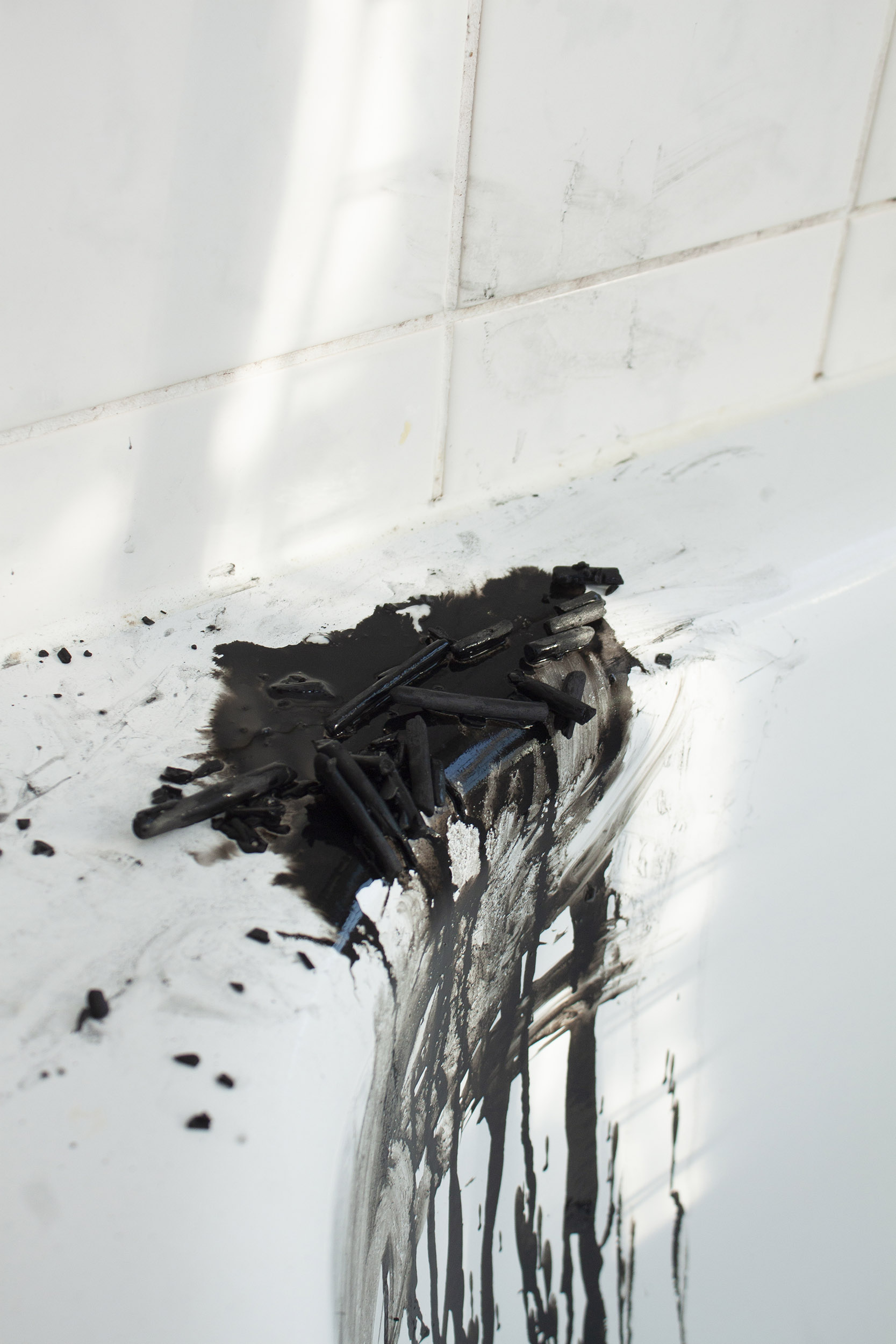 I always thought I would understand this language. My memories blur between Christmas traditions and summers spent in Poland, in my grandmother’s small village. In the area of “Orzech”, which translates to “nut”, you come across many stone coal mines. The houses and our mucosa membranes took on the color black. When I was younger, I pretended to understand the conversations of the adults. Maybe I actually did. Today I paint a blurry picture in my head of this country, assembled from stories, my childhood and my family. Now I live 750 km away from my parents while they live 690km away from their own parents and I 835 km from them. This emotional distance is almost equivalent to the spatial distance. Why can I then not ignore this part of my identity? My grandfather asks about us on the phone, my grandmother has dementia. No longer do I receive letters from them, that my mother would have to translate for me. Will I grieve when they disappear? The work was developed during the month of March till June of 2020 in the bathroom of my flat in Hamburg. There is nothing in there, that reminds me of my roots. This intimate room is a constant spacethat I inhabited when I was alone.